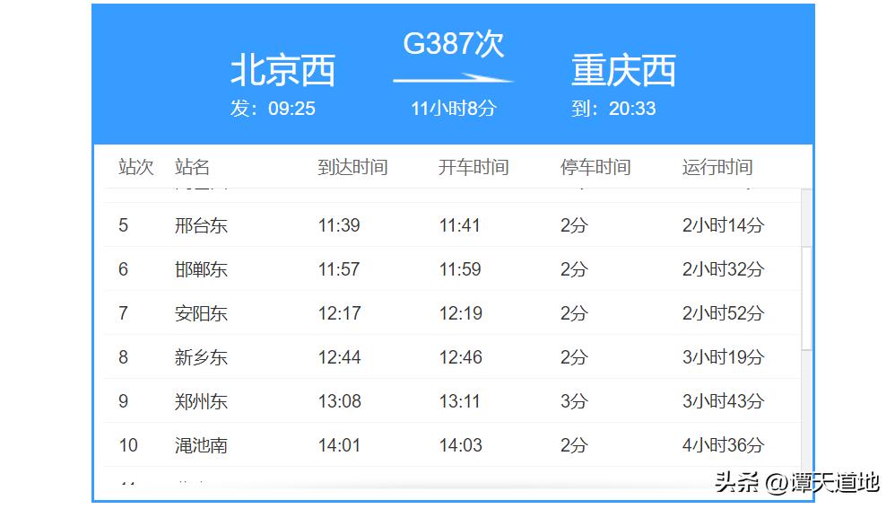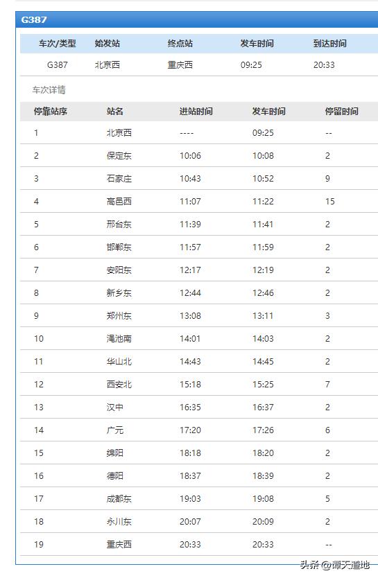 请看上图,上图为G387次列车的基本信息。