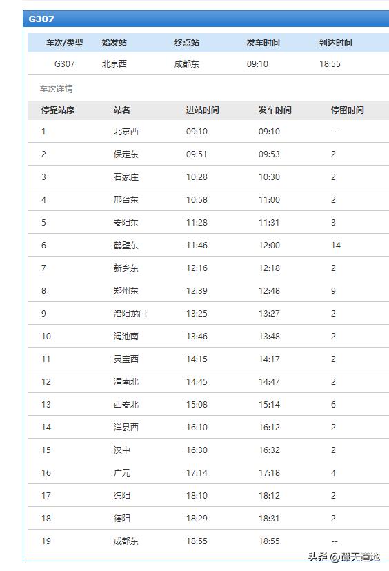 请看上图,上图为G307次列车的所有站点信息。