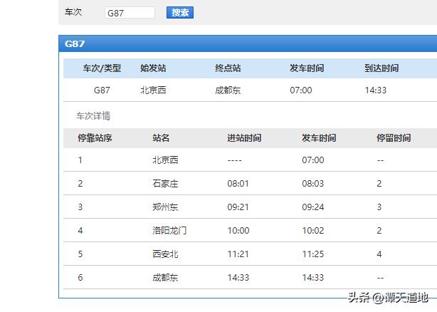 请看上图,上图为G87次列车的基本信息!