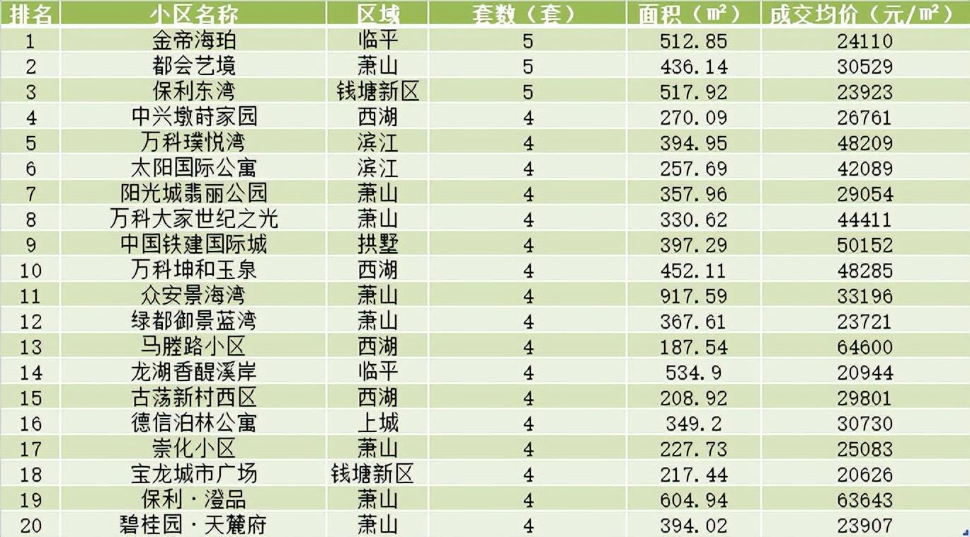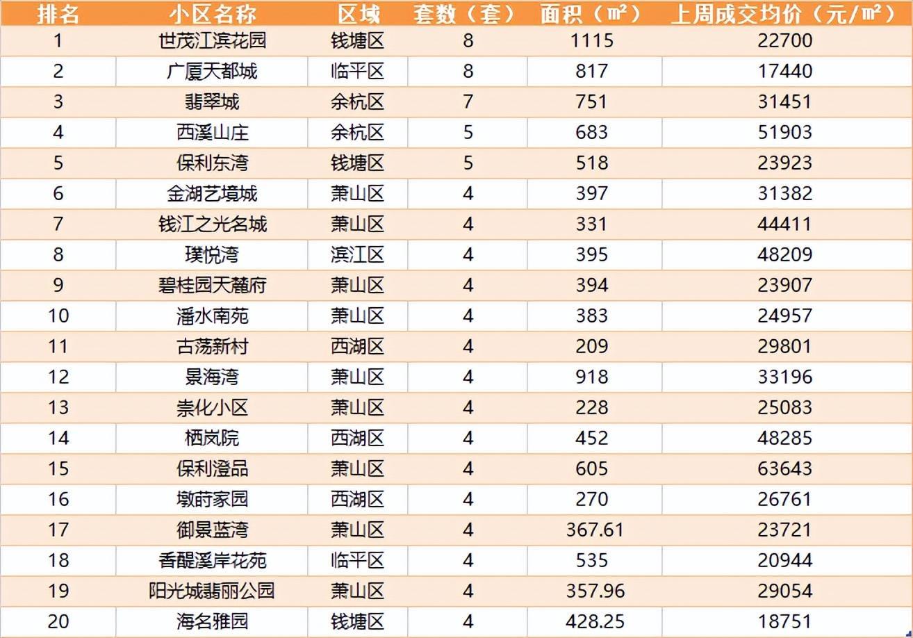 上周萧山低价二手房成交火热,9个小区闯进成交TOP20