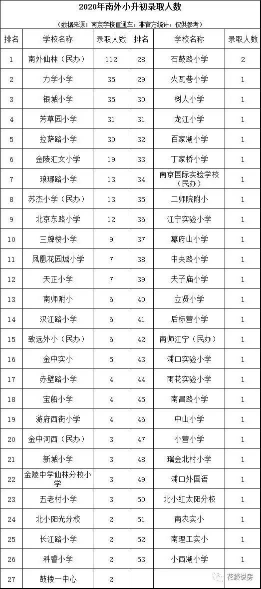 南外小升初各校录取人数排名出炉,前10名校学区房门槛曝光!