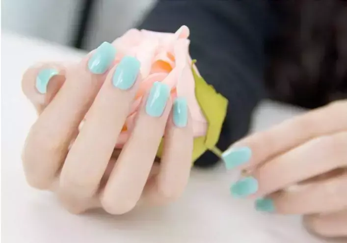 薄荷色虽然很美,但是涂纯色还是更适合手白的小仙女。