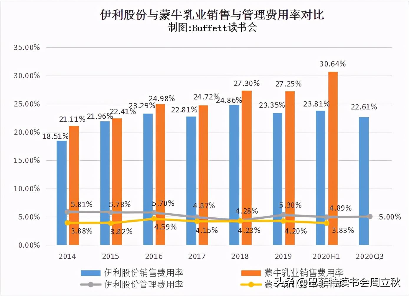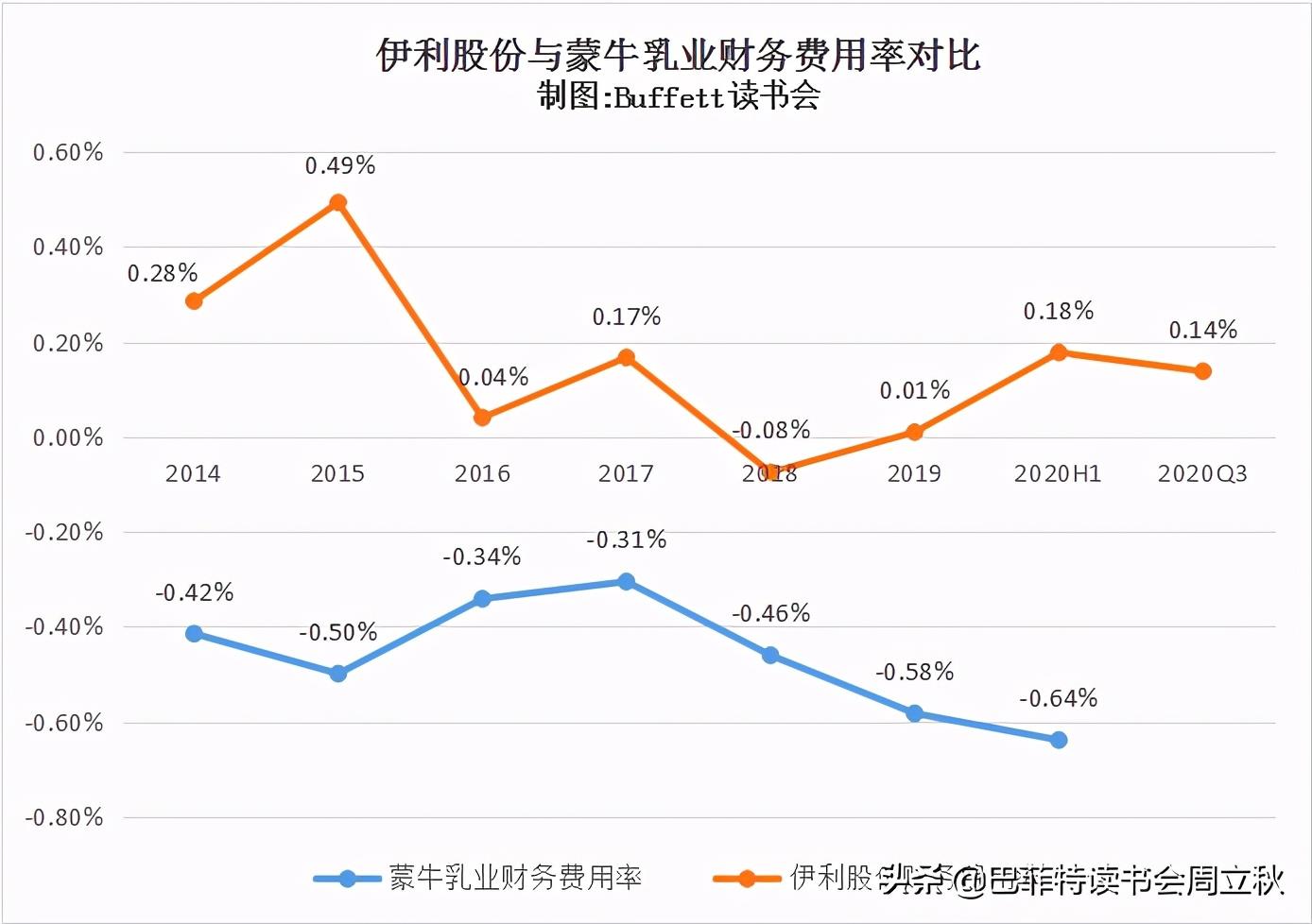 (5)费用率上看,蒙牛乳业的销售费用率远高于伊利股份,管理费用率和财务费用率,伊利更高一些;