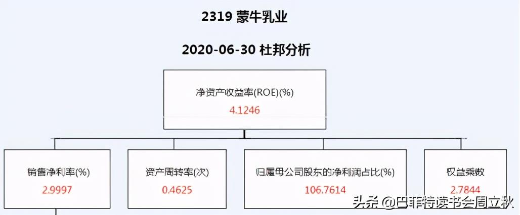 蒙牛乳业2020H1的净资产收益率是大幅下降的,主要是由于销售净利率和资产周转率的下降引起的。