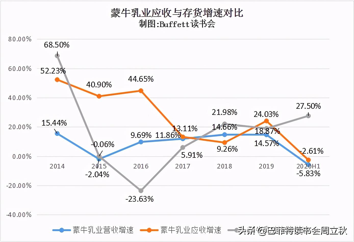 蒙牛乳业近两年的应收和存货增速与营收增速比较接近。