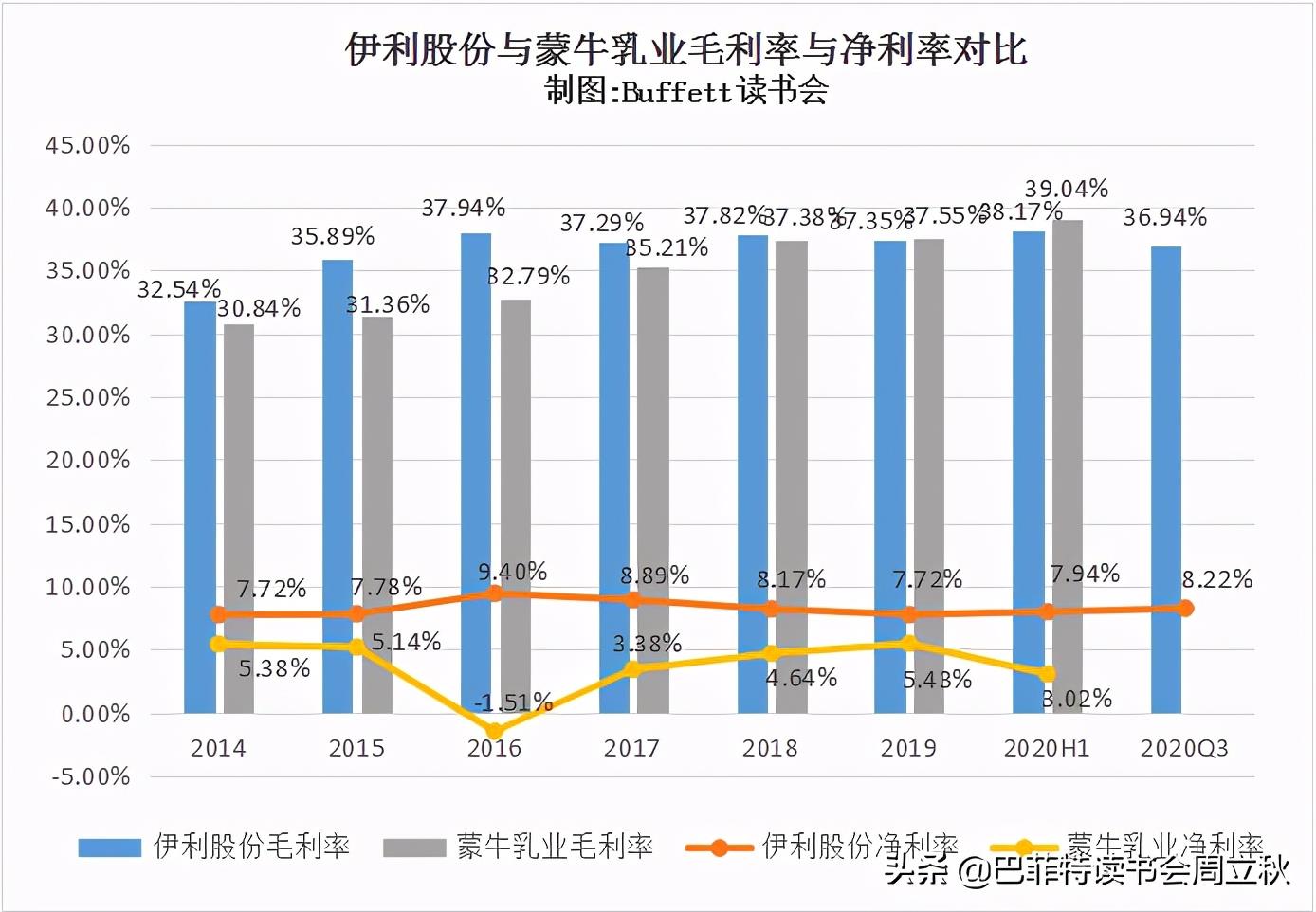 对比两家乳业龙头企业的财务数据,我们可以看出: