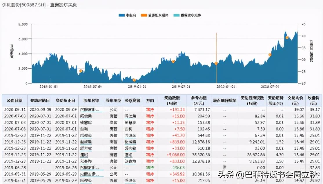 伊利股份高管增持比较多。