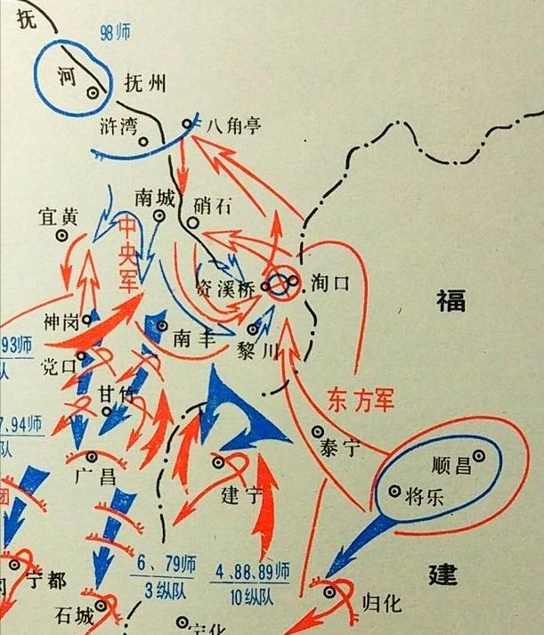 9月25日,北路军第1路军以3个师的兵力自南城出发,经硝石向黎川发起进攻。东方军奉命由福建省将乐、顺昌北上,拟首先消灭进逼黎川之国民党军,进而与敌在抚河会战。
