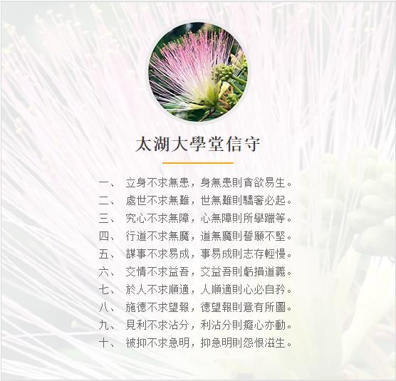 太湖大学堂是由南怀瑾先生倡议,李素美、李传洪姐弟携郭姮妟博士等人共同创办的教育基地。太湖大学堂始终致力于中国传统文化的拓展与传播,旗下附属吴江太湖国际实验学校,自创办十多年来,得到社会与教育界高度的认可。