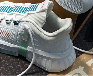 这双安踏先进球员实战篮球鞋的鞋面部分,大量的采用了工程网布的鞋面材质,这种网布鞋面材质的使用,保证了这双鞋整体的透气性能。