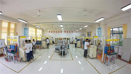 肇庆市农业学校机器人工作站一体化项目教学。受访学校供图。