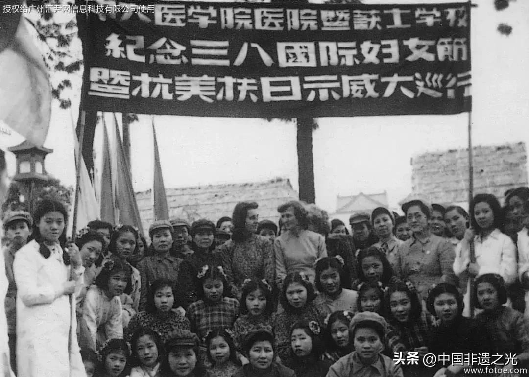 ▲1951年3月,广州,中山大学医学院医院暨护士学校参加“纪念三八国际妇女节暨抗美扶日示威大游行”。