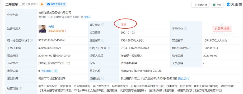 如涵控股在2019年4月上市当天经历了破发,因持续净利润为负,2021年4月,它完成了私有化退市,黯然收场。2023年,上市主体杭州如涵控股股份有限公司经营状态由存续变更为注销。