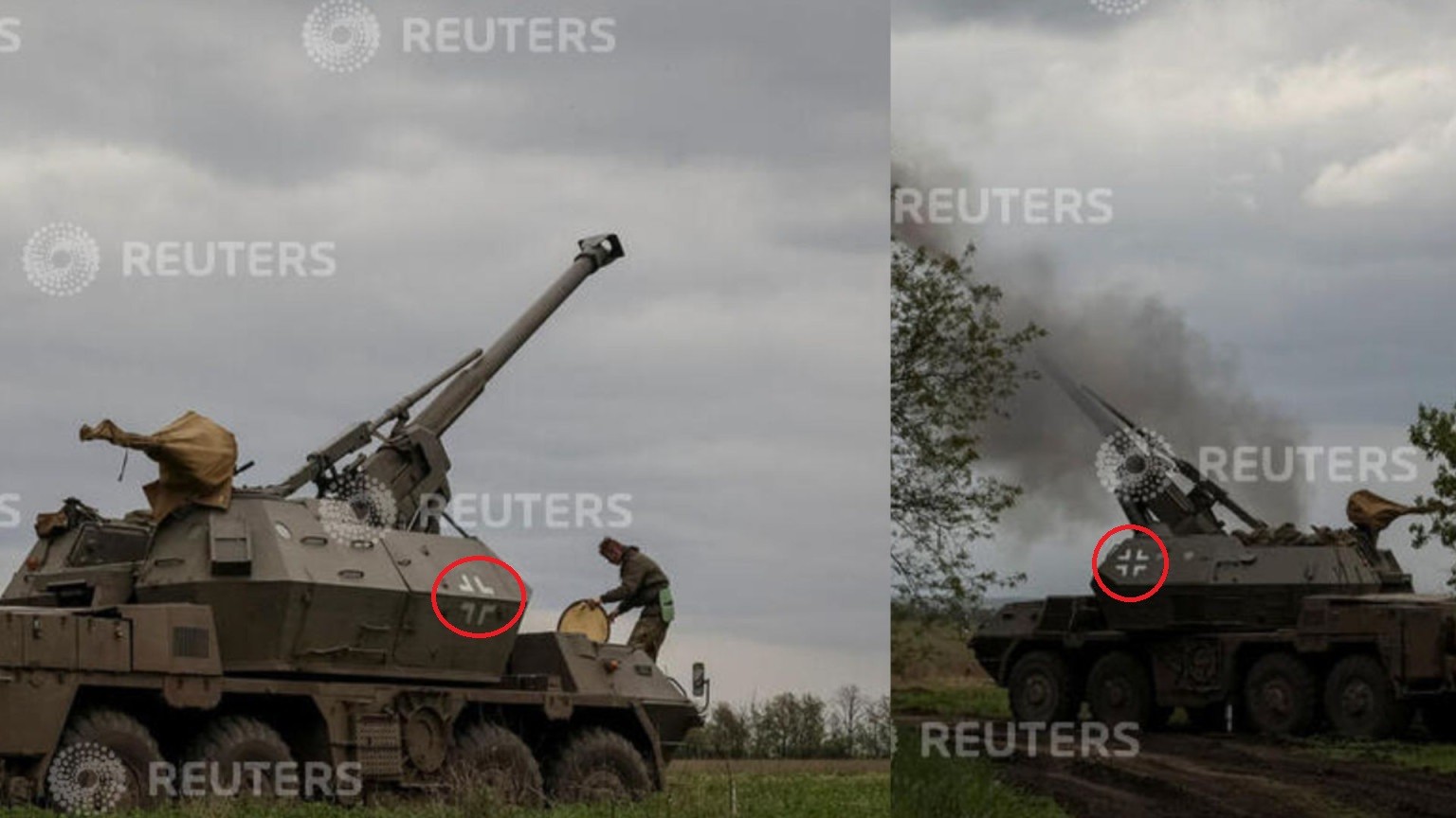 无独有偶,2023年5月19日一篇奥地利的报道称:捷克批评乌克兰军队在捷克捐赠自行榴弹炮上绘制黑白十字。捷克自行榴弹炮上的黑白十字和上面白色十字样式一样,但中间涂成了黑色。