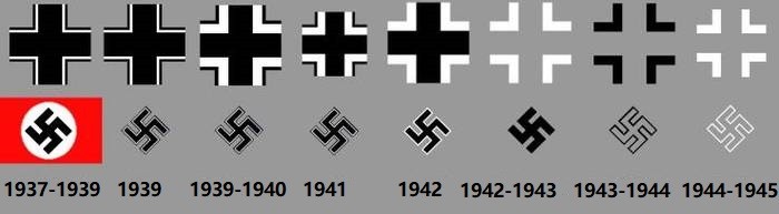1940年西线战役开始时,黑白横臂十字被用于所有国防军装甲车辆上,而且因为装甲车辆大小各异,所以黑白横臂十字的尺寸也有所不同。