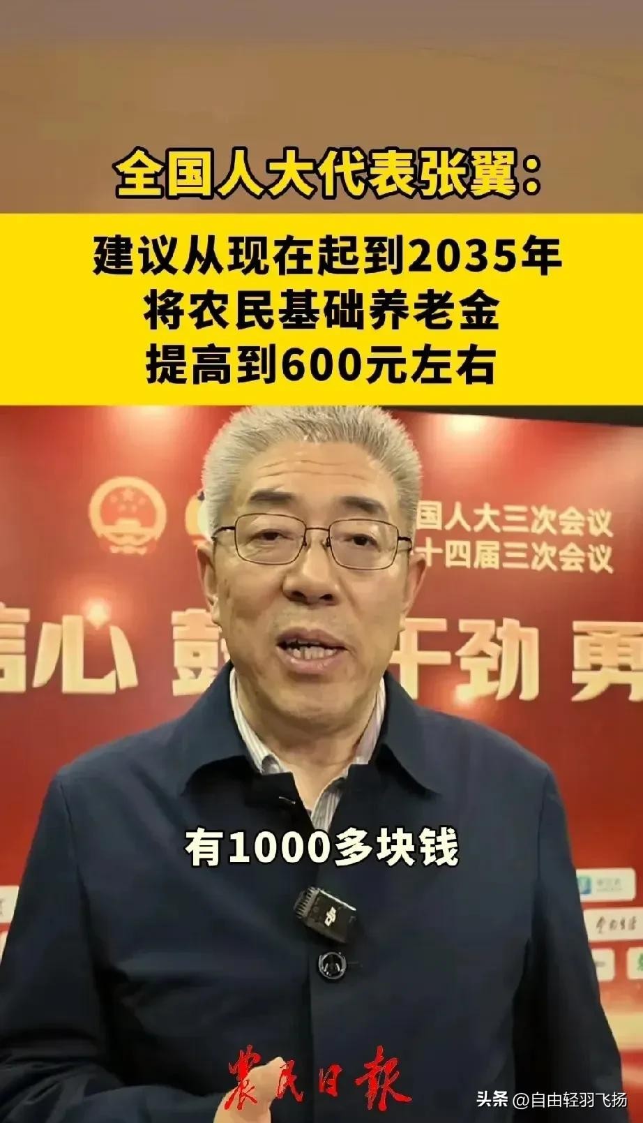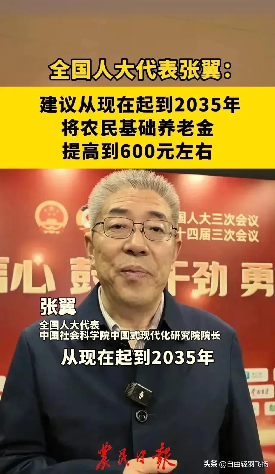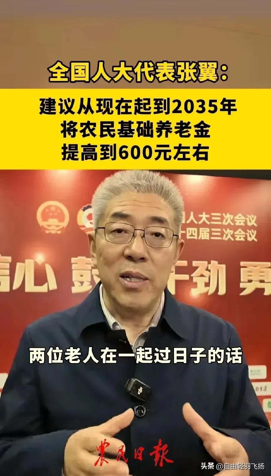 在今年的全国两会上,全国人大代表张翼提出的“从现在开始到2035年,把农民的基础养老金涨到600元”这一建议。这一建议背后,承载着农民群体对晚年生活保障的深切期盼,也反映出我国在完善社会保障体系道路上的新思考与新探索。