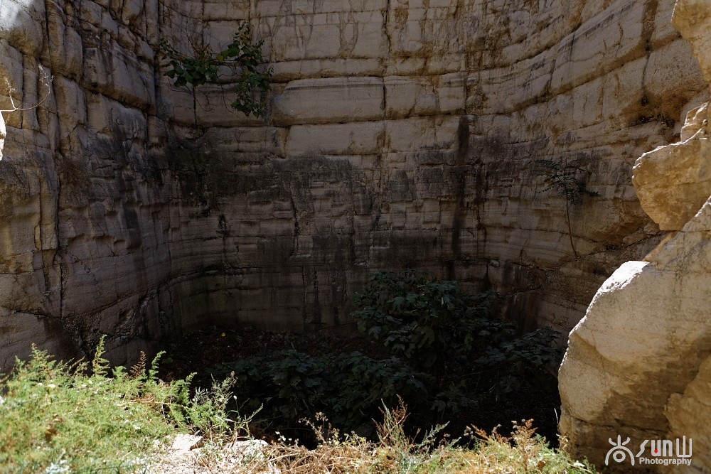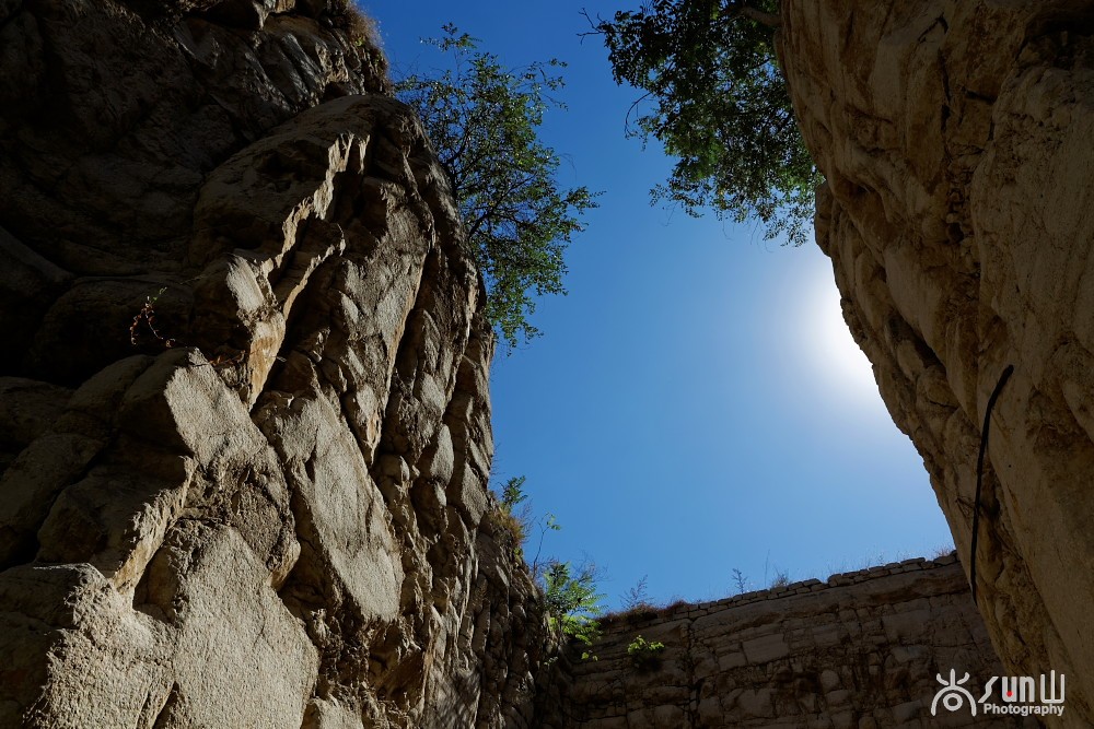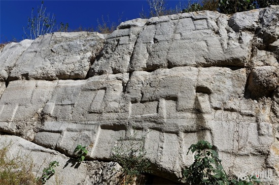 从墓道里面看两侧峭壁垂直而上,仿佛用斧头直劈而成,令人叹为观止。墓道尽头的墓室,也是峭壁直立,蔚为壮观。
