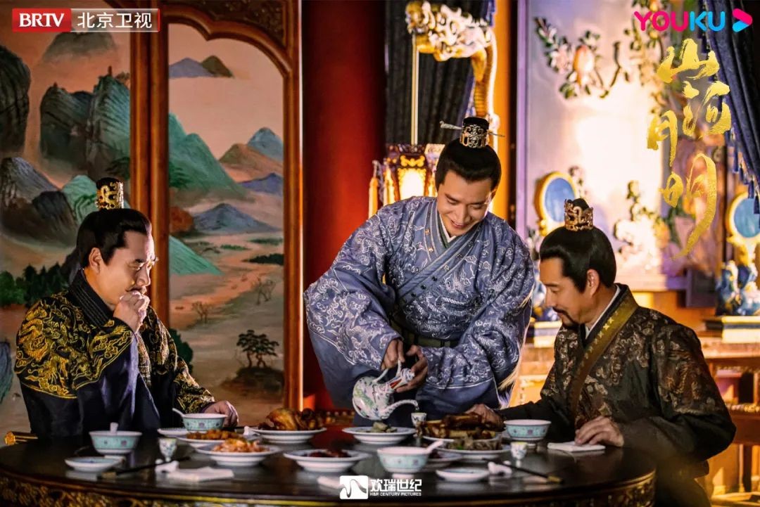 在《山河月明》里,何晟铭用几个关键词「复活」了这位历史上可惜可叹的皇太子。首先是暖心大家长,不显山露水的朱标,是朱家从上至下所有人的依靠。父皇朱元璋(陈宝国 饰)从饭局到国事都要朱标陪着给意见;几个弟弟的教育他要管,四弟朱棣(成毅 饰)逃婚他要找,调和家庭矛盾似乎是他存在的最大意义。