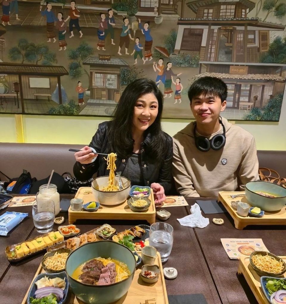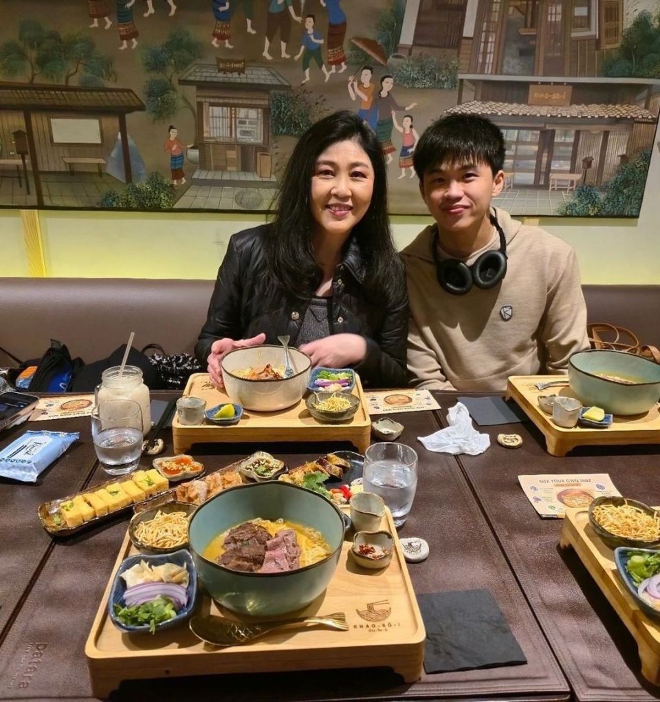 而看到和英拉坐在一起的人,就知道她心情为何那么好,面对镜头时笑容为何如此甜美了。英拉当天带着正在伦敦上学的儿子苏帕塞克·安莫查一起吃饭,想来第一张照片就是儿子给她拍的,否则也不会那般灿烂了。