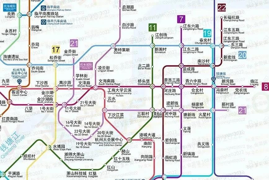 该线路图包括了1号线到22号线以及杭海、杭安、杭诸、下长、杭桐、绍兴等地铁线路,让人们对杭州地铁未来的发展充满期待。