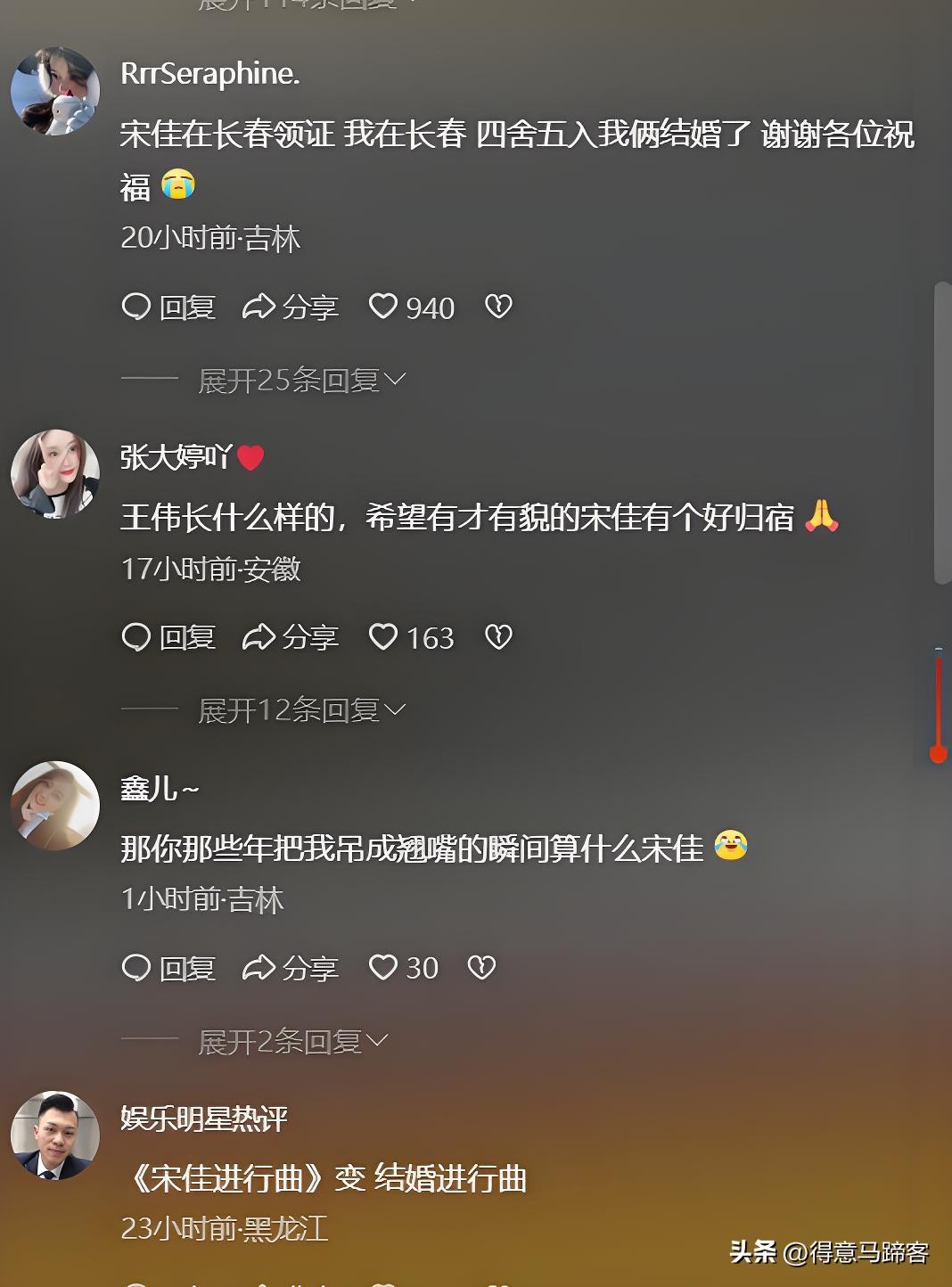 知名娱记“追瓜少年阿飞”曝光消息,据其透露宋佳与比自己小七岁的导演王伟,早在2011年5月20日便已领证成婚。