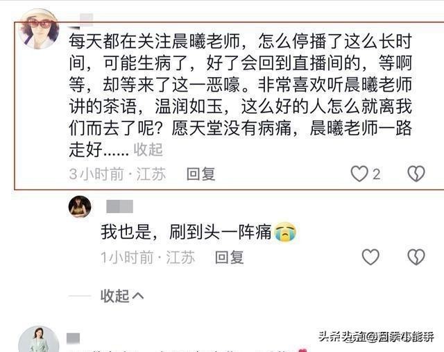 “姐姐,新出的茶具什么时候上架啊?”、“今天怎么没直播?是不是太累了,要注意休息啊!”粉丝们一如既往地在“晨曦姐姐”的直播间留言互动,却迟迟等不到她的回复,往日热闹的评论区,如今已变成了一片静默的悲伤海洋,因为一条突如其来的消息,让所有喜爱“晨曦姐姐”的人陷入了无尽的错愕和惋惜,那个总是面带微笑、温声细语的女子,那个将毕生热爱倾注于茶文化的优雅六岿屮╮ふ尪你继续做你喜欢的茶艺”