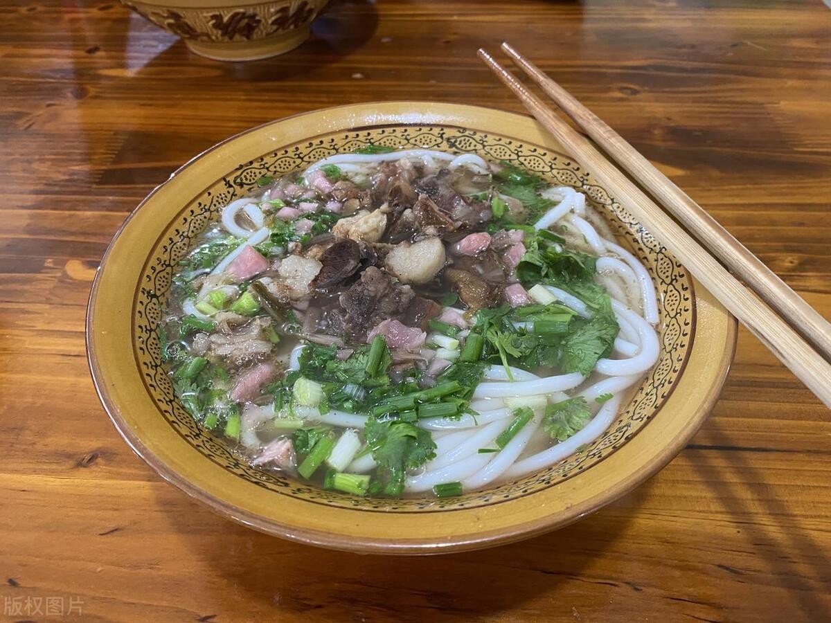 荔波割肉粉:现割下新鲜牛肉薄片与粉一起煮制而成,汤鲜肉嫩加上爽滑筋道的米粉,让人垂涎欲滴。