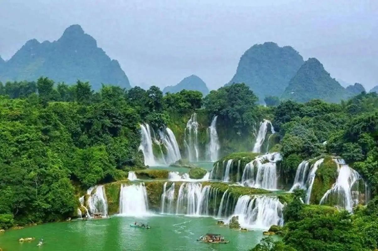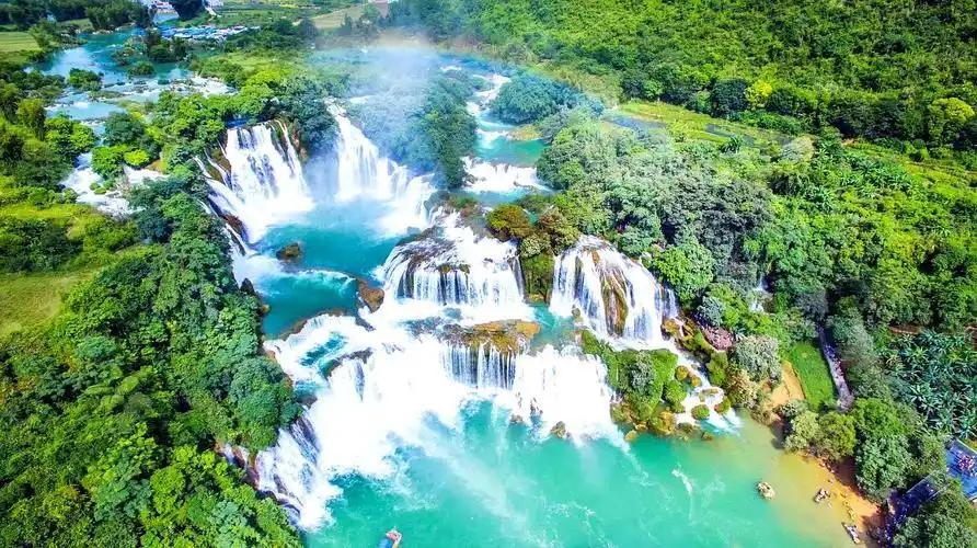 接着行驶约一小时,可前往名仕田园,宛如一幅秀美的山水画卷,有着小桂林的美誉。附近还有铜纳屿湾与龙宫仙境,可酌情游览。接着前往德天跨国瀑布,横跨中越两国,数十道瀑布倾泻而下,气势磅礴。