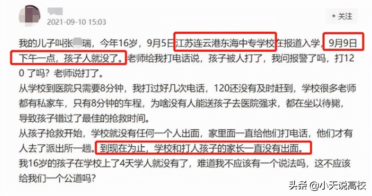 江苏:中专新生入学仅4天在校被殴打致死,还敢让孩子读中专么