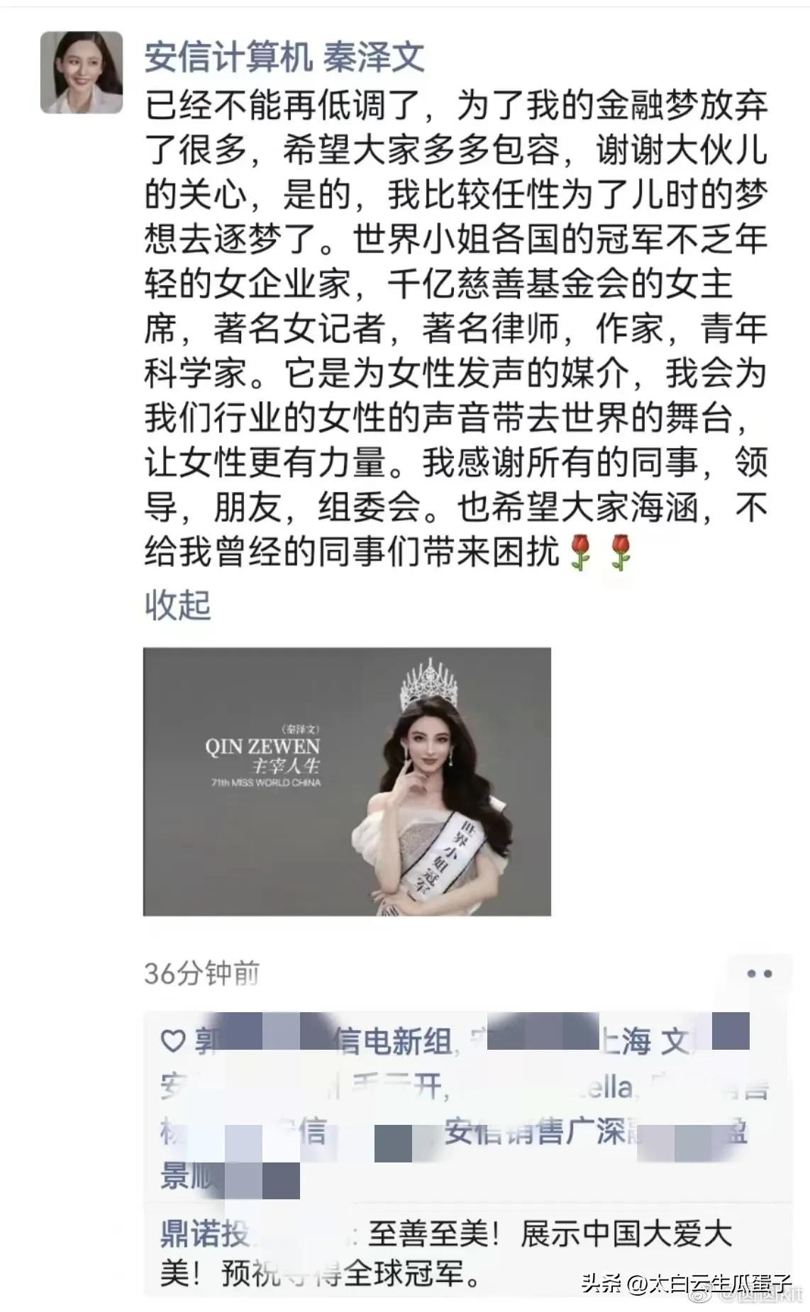 秦女士已经在朋友圈发声。