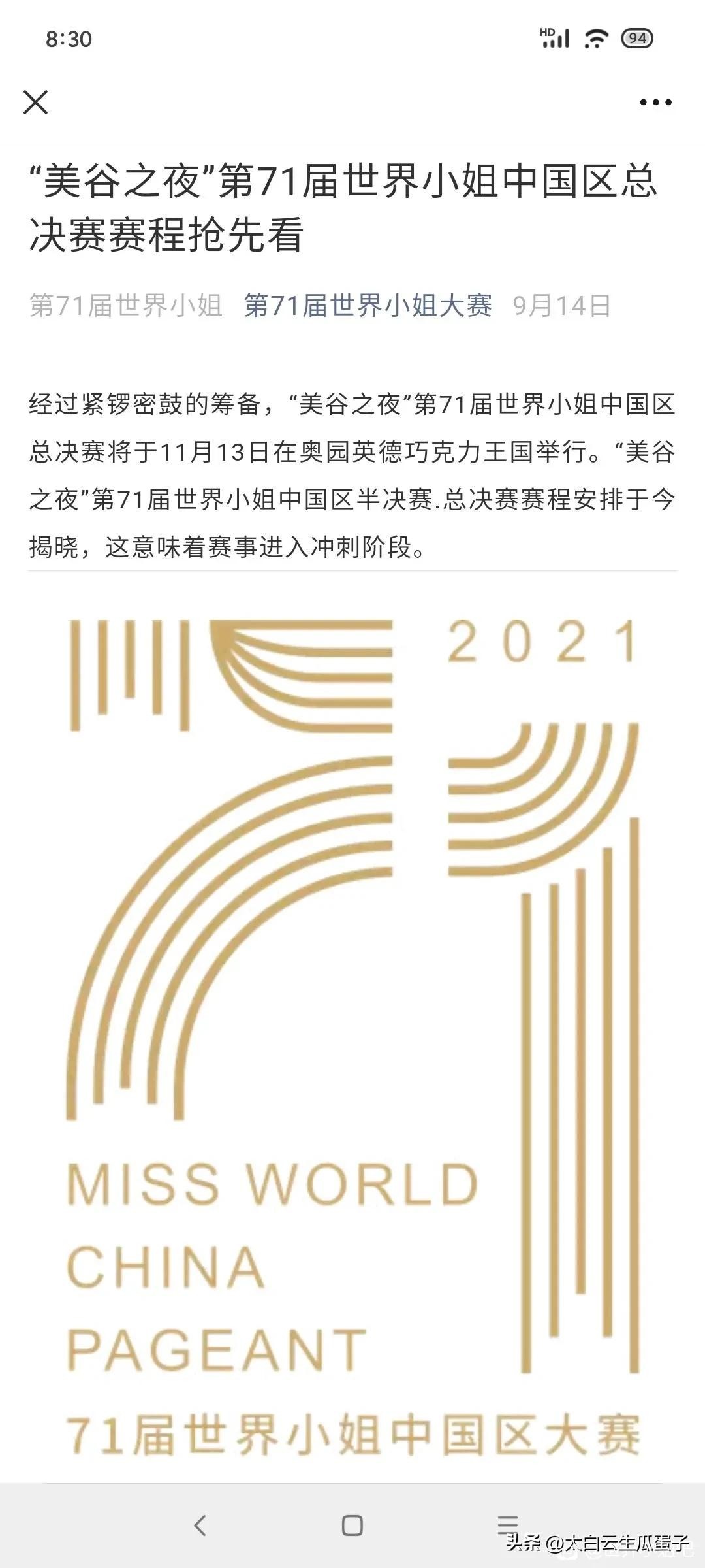 据报道,2021年11月13日,决赛如期举行。来自武汉的女学霸阮玥获得冠军,当时理论上将代表中国区参加71届世姐决赛。