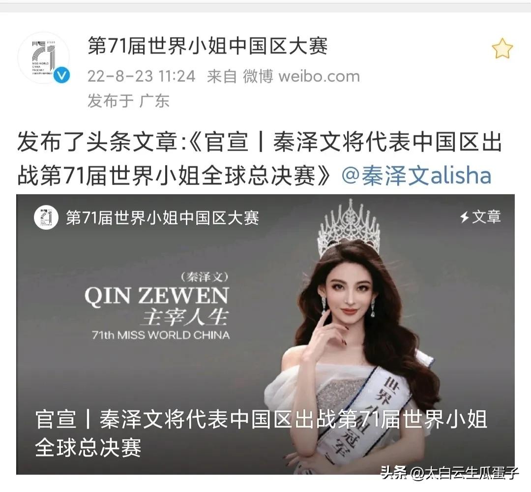2022年8月14日,第71届世界小姐中国区组委会突然全网通告:取消阮玥第71届世界小姐中国总冠军荣誉。