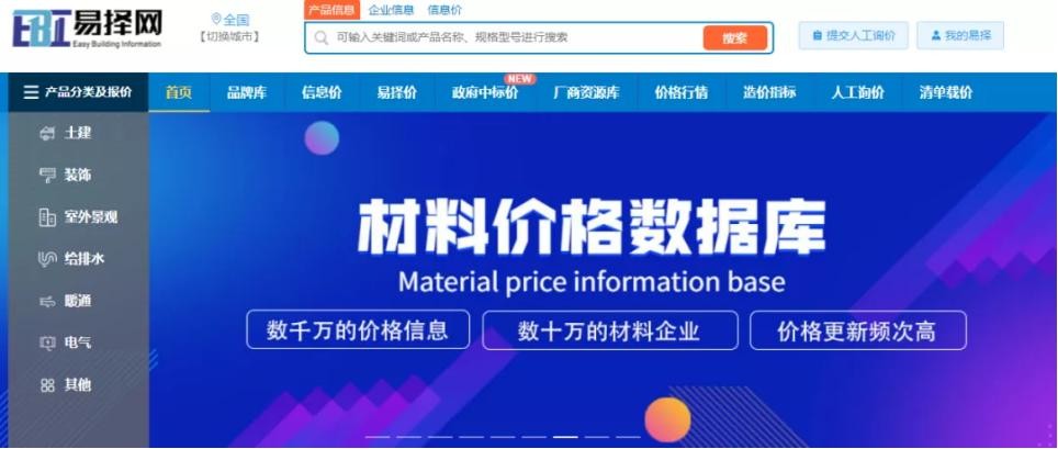 房地产开发是个投资浩大、周期长、未来售价不可控但成本可控的项目。对于房地产行业而言,控制成本最关键的是从成本组成切入。一般建筑工程,建材占工程造价的60%-70%左右,而建材受产地、运输、品牌、政策、原材料等因素的影响,市场上建材价格差异非常大。尤其是2021年下半年限电以来,各地建材价格飞涨,价格波动非常大,这无疑是房地产行业迎来的另一大挑战。目前市面上大部分房子都是精装修出售,自2021年9月份以来,受发改委政策和石灰、煤炭等原材料成本上涨等因素的影响,全国水泥价格指数一路水涨船高,截至2021年9月底,水泥价格涨幅高达37%。装饰材料价格波动更大,直接影响了后期的交付。这也是现在大多数房地产企业面临的挑战,有效控制成本是迫不及待需要解决的问题。 其实对于房地产企业的成本岗来说,想要有效的控制成本,除了走访市场,关注政府出台的相应建筑工程材料的价格之外,还需要掌握精准高效的询价工具。政府出台的建材种类不够全面,价格时效性比较差,远远跟不上市场动态变化,不够贴近市场价格。所以平时除了走访市场外,更多的是在易择网上进行询价。如果建材需求周期比较宽裕,一般在易择网上自行搜索比价,所需的建材在网站上基本都能查到。如果建材需求周期比较短,可以使用人工询价,也是非常方便的。