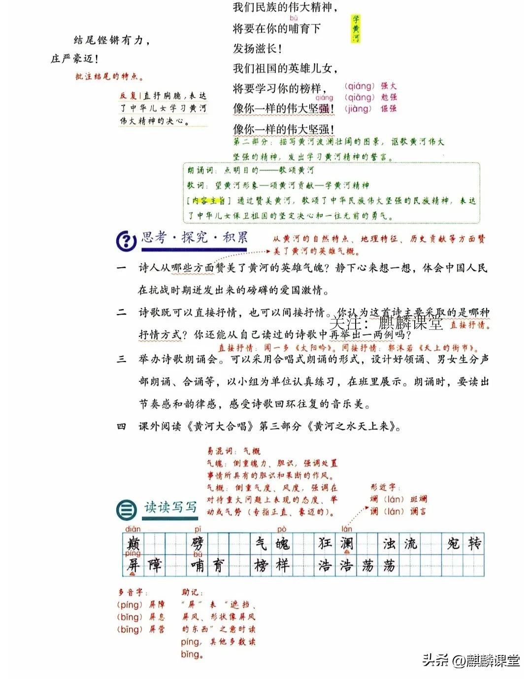 家有初中生的家长们看过来!今天给大家分享2025年春季新版七年级语文下册第五课《黄河颂》的超详细课文笔记和重点内容汇总,绝对是孩子学习路上的提分秘籍,赶紧保存图片,让孩子的语文成绩一路狂飙!