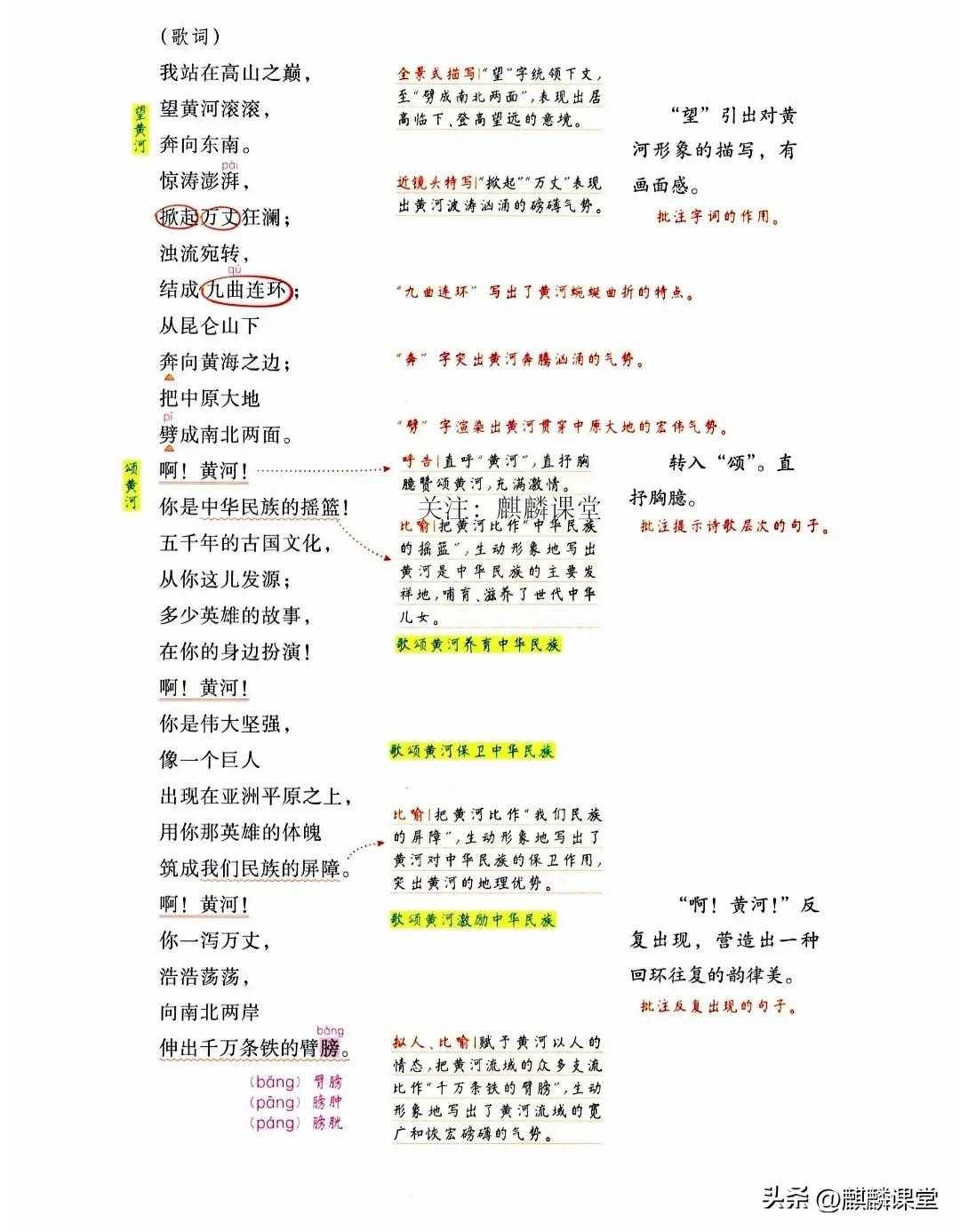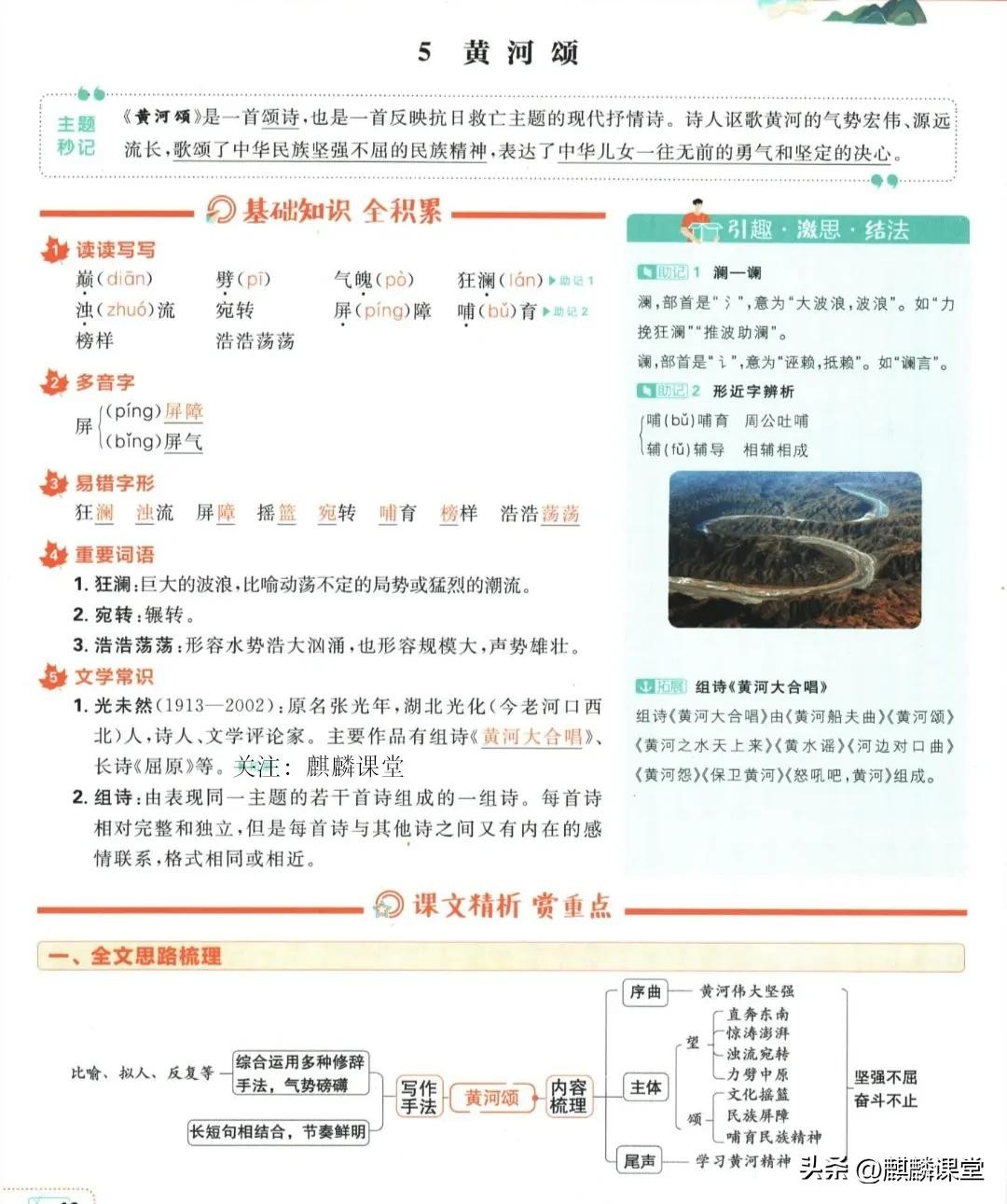 七年级语文下册第五课《黄河颂》课文笔记和重点内容梳理