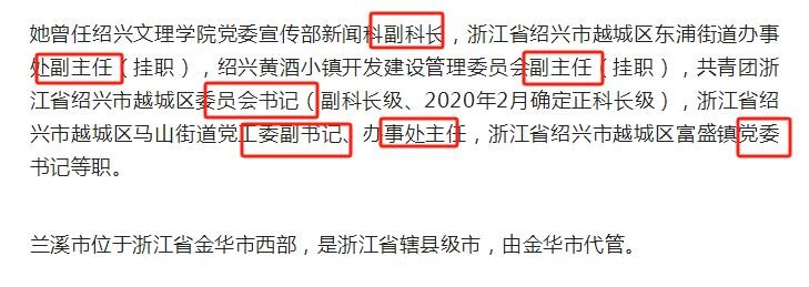 浙江兰溪市90后美女副市长火了!背景被扒,7年高速晋升令人赞叹