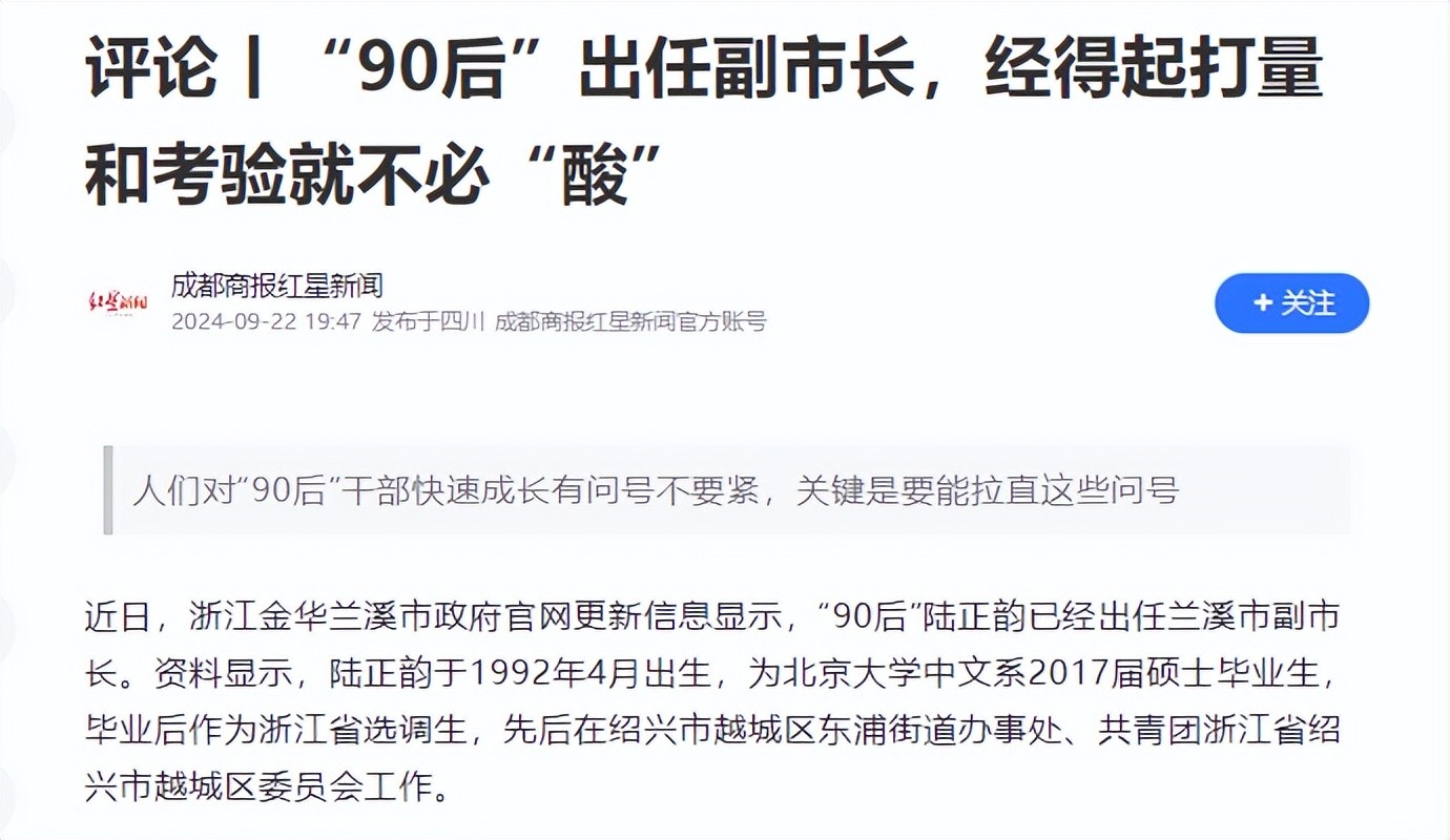 陆正韵的“走红”,以及由此引发的舆论风波,让我们不禁思考:该如何客观评价年轻干部?如何看待年轻干部在体制内的快速晋升?