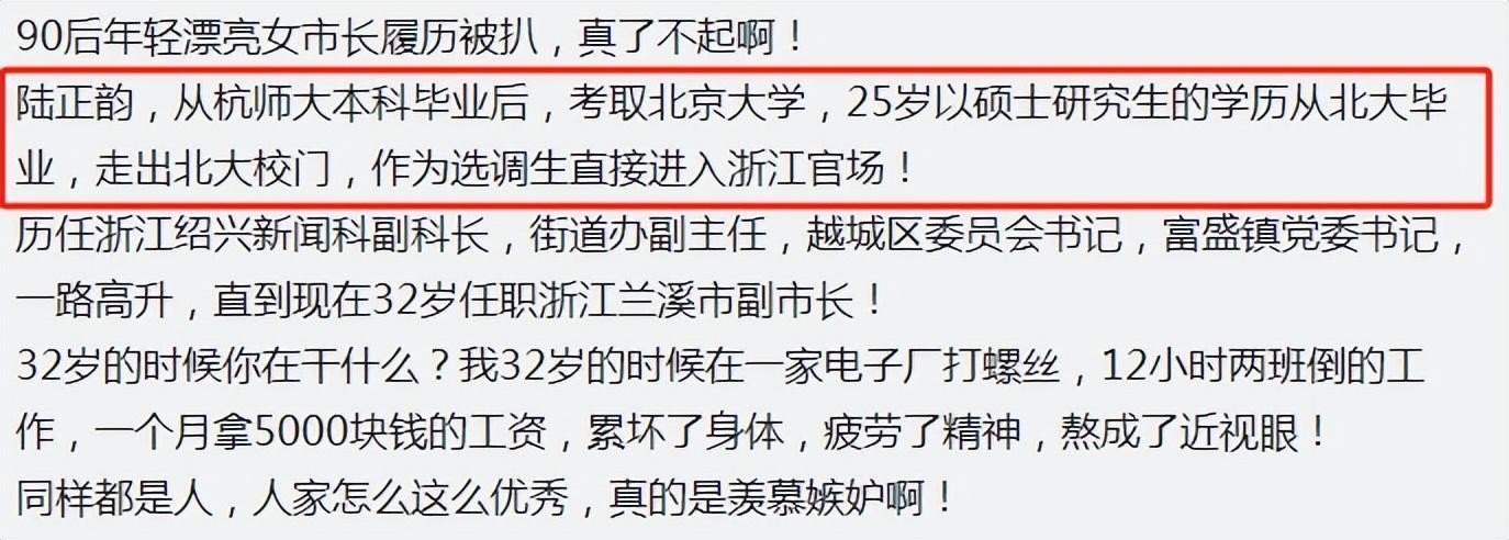 第一,陆正韵自身的“硬核实力”,是她快速晋升的“基础”。北大硕士的学历背景,让她在体制内拥有了更高的起点。
