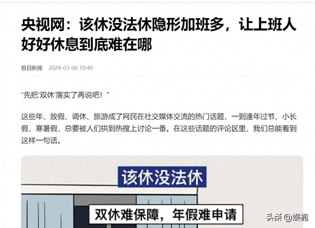 而就在前不久,央视网更是发了一篇文章,直言现在的打工人想要好好休息真的太难了,而明年的5月1日就是我国实行双休制满三十年的时候。