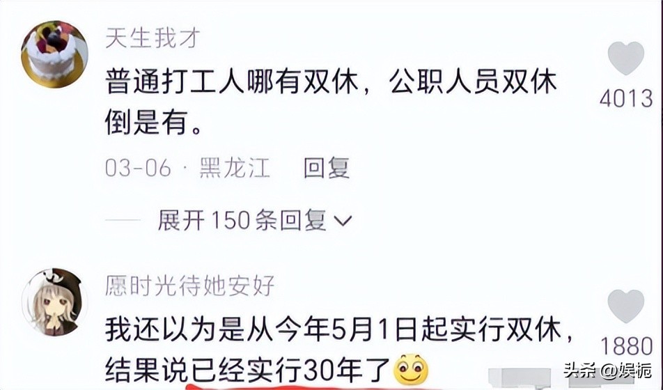 说好的双休,到现在退步成单双休最后到单休,现在竟然说已经实行了30年,简直不要太夸张!