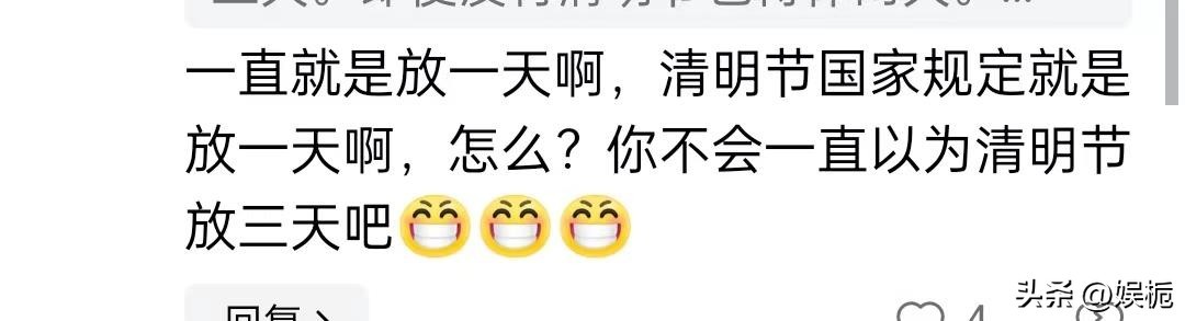 当然也有网友说清明节的假期一直都是放一天,这件事我怎么不知道,难道之前真的是一天?