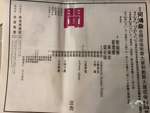 何鸿燊家属联名讣告 家族完整名单首次公布.新京报