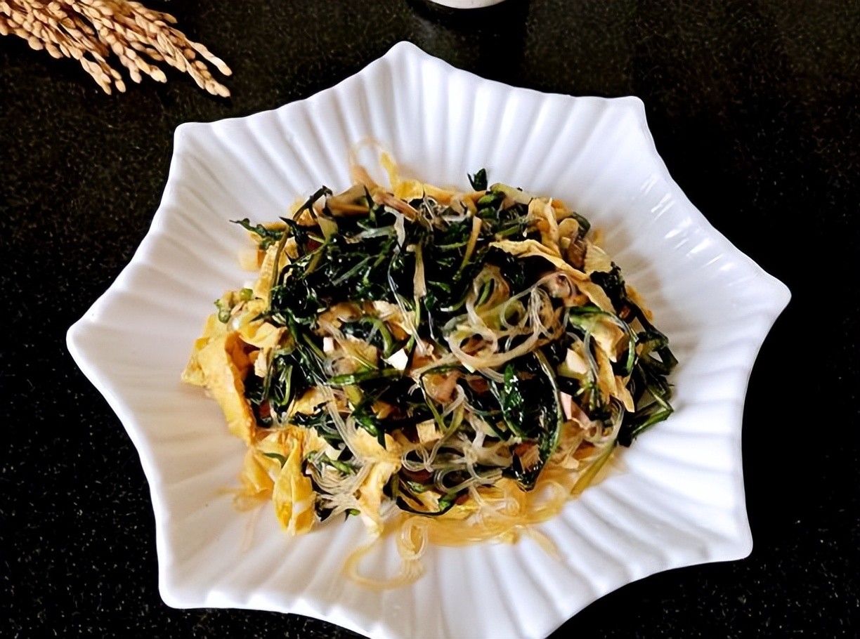 5. 出锅装盘:将炒好的蒲公英炒鸡蛋盛出装盘,即可享用。