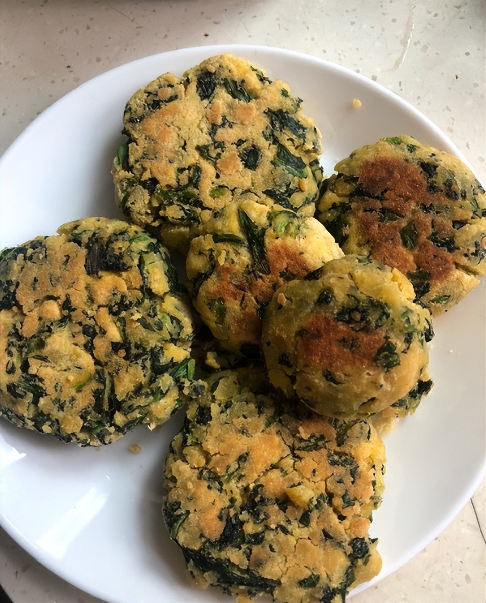 6. 装盘和享用:将煎好的蒲公英贴饼子取出,切成小块。可以搭配喜欢的酱料或直接享用。