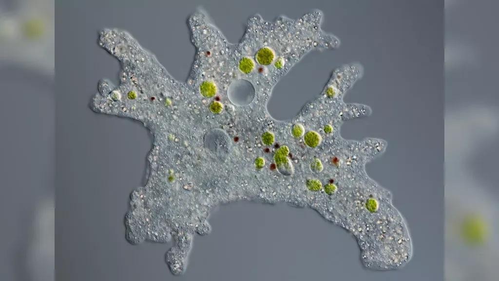 变形虫,有用于生产食物的充满藻类的液泡。