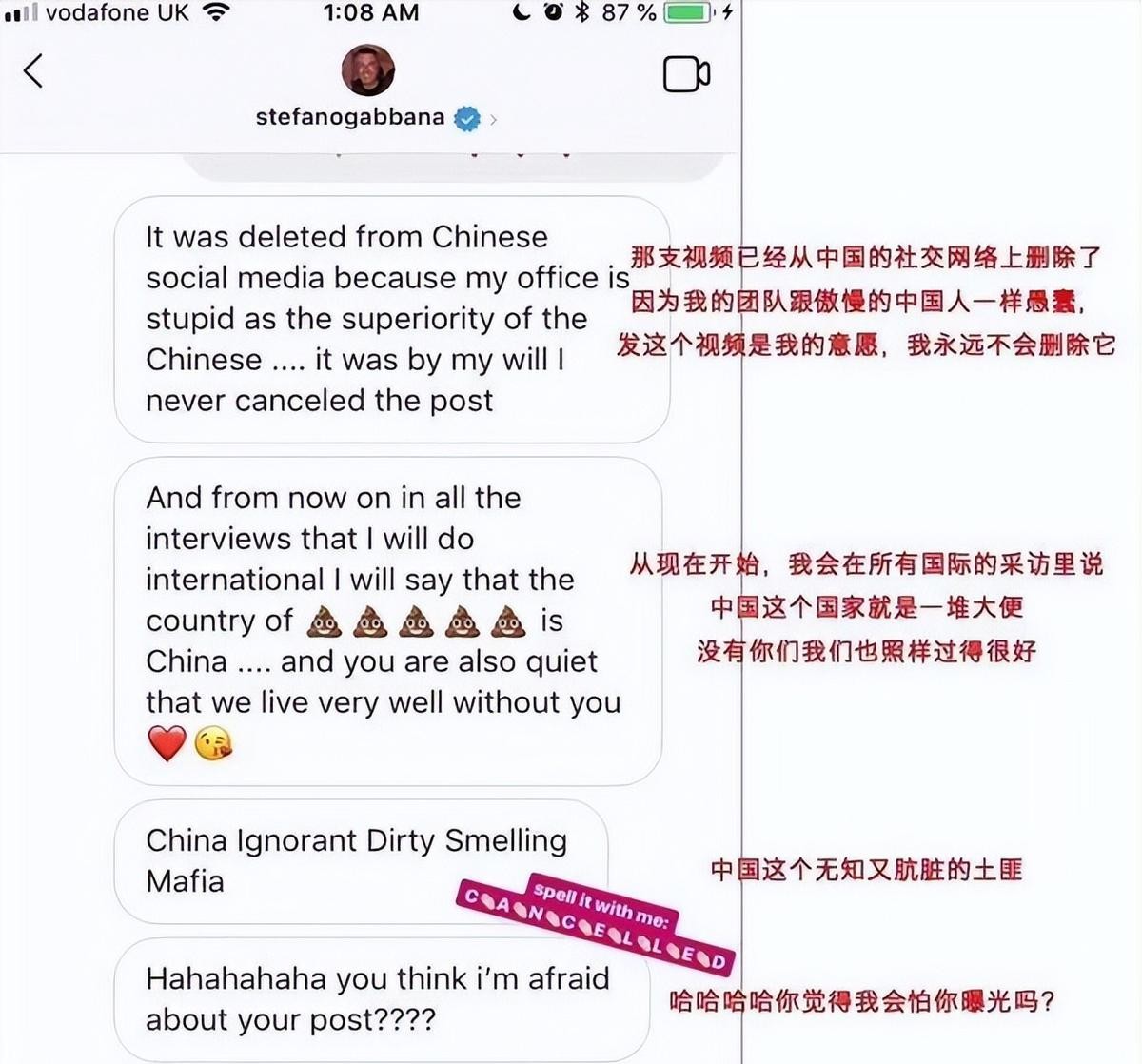 面对质疑,D&G的回应不仅没有平息众怒,反而火上浇油,设计师不仅没有道歉,反而在私信中用带有侮辱性的语言攻击中国,声称即使没有中国市场,D&G也能活得很好。