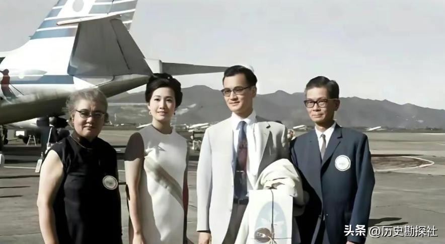 这张合影是在1968年,连战和他的妻子连方瑀、以及父亲连震东、母亲赵兰坤在机场的停机坪前留下了这张珍贵合影。