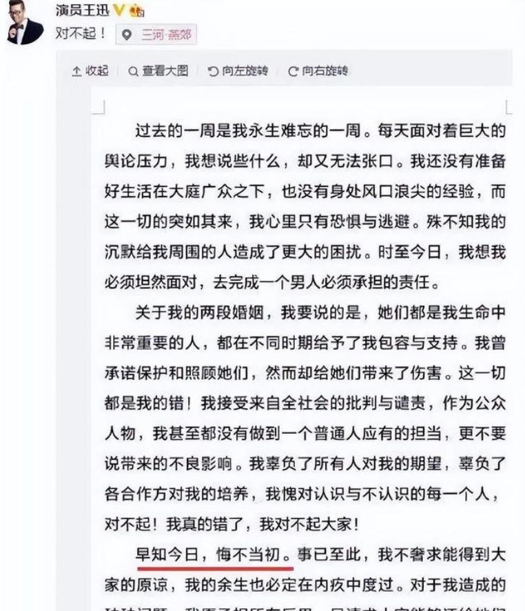 随着事情发酵的越来越严重,甚至影响到了王迅家人的生活,王迅不得不出来解释,并做出深刻的反思,还决定了闭门思过,可是网友们更觉得他做的这些,都不足以魏臻受过的痛。