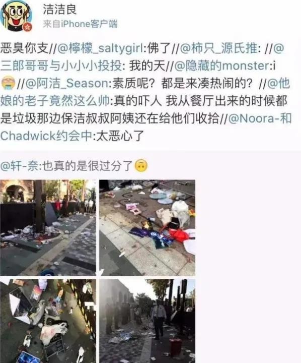 在首映礼结束后,粉丝在离场时陷入了混乱,而首映礼现场也一片狼藉,到处是空旷水瓶和吃剩的零食。