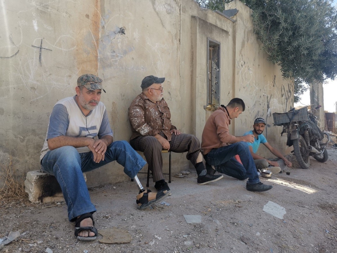 △艾哈迈德(左一)和同样因为战争而残疾的伙伴(图为记者拍摄)
